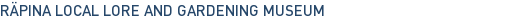 A visitor can see an exhibition of the oldest running paper mill in Estonia at Räpina local lore and gardening museum. The exposition also introduces the Räpina parish and manor complex, the history of the town, local gardening school and gardening. One can get acquainted with old tools and household implements, folk music instruments made by Elmar Luhatsi and the researches of the explorers of local lore.